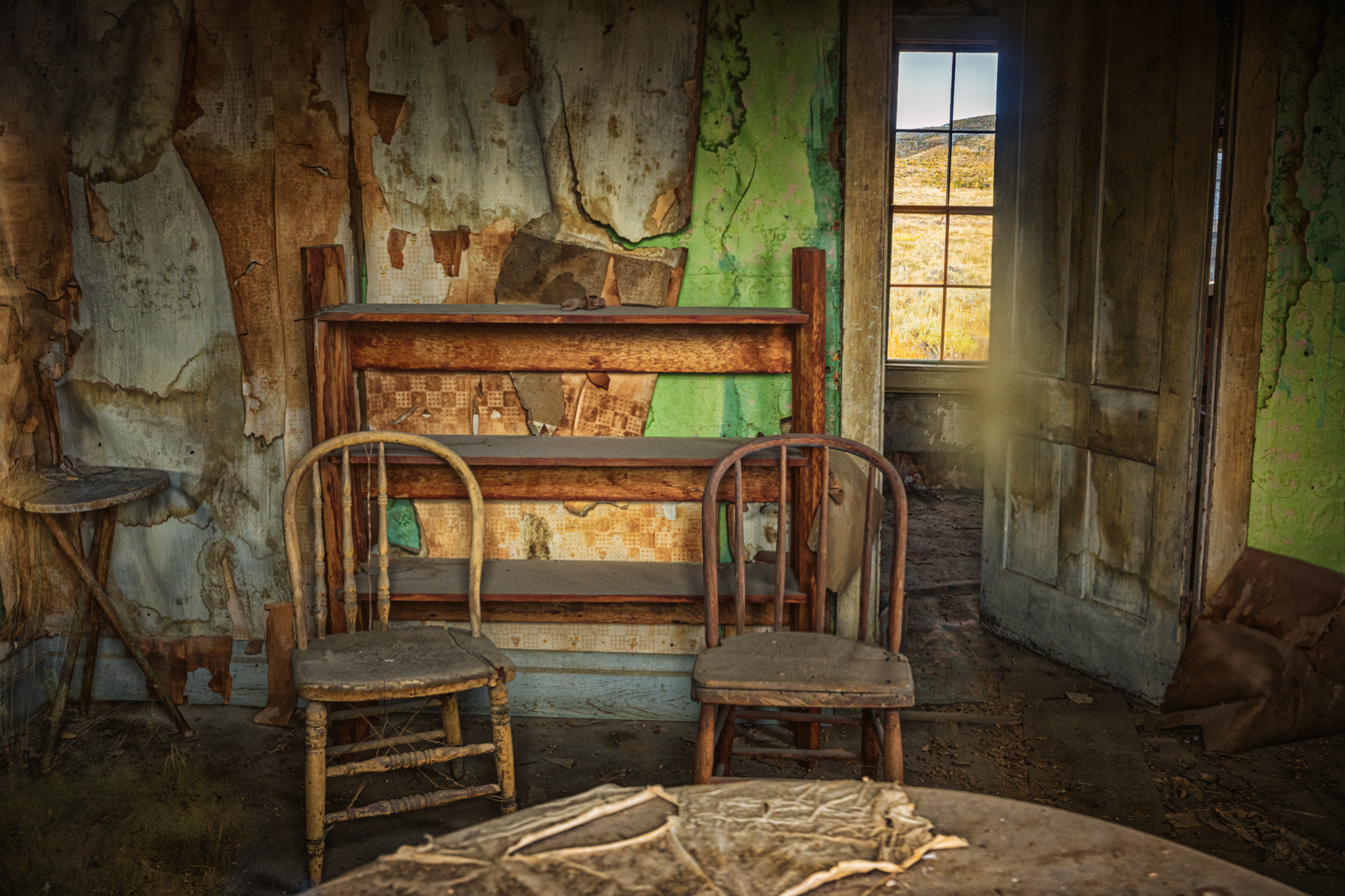 These images were taken on September 30, 2023, at Bodie State Historical Park in California. This is the remarkably well preserved gold mining ghost town that dates back to 1881. The interiors of the buildings are protected by glass, so to get the interior shots here, I used a technique of shooting multiple shots with the Nikon Z9 held directly against the glass and then stitching those images together to give a relatively clear, glare-free view of what was inside.